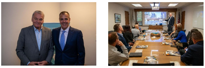 The Czech delegation visited Chicago in honor of the 35th anniversary of the sister city relationship between Chicago and Prague. While in Chicago, they expressed interest in learning more about the Chicago region’s approach to flooding and emergency management, making the MWRD an ideal match to share knowledge. In addition to Chairman Garcia, the Czech delegation heard from MWRD Director of Engineering Catherine O’Connor and MWRD Assistant Director of Engineering Kevin Fitzpatrick and MWRD Principal Civil Engineer Richard Fisher, who presented the group with strategies and stormwater management partnership programs the MWRD has implemented across Cook County to mitigate flooding.